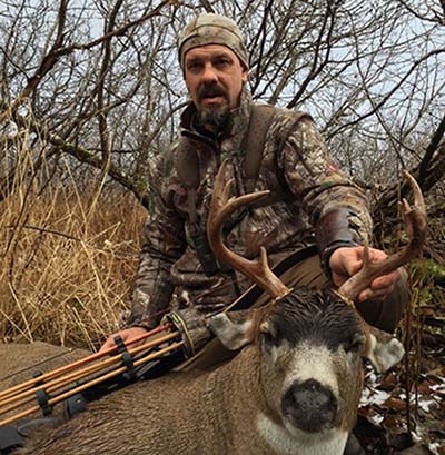 17″ Dalaa w/DAS RGS carbon limbs and a Mountain Muffler bow string, Gold Tip XT arrows, Lumenoks, Woodsman Blood Groove Elite Broadheads.