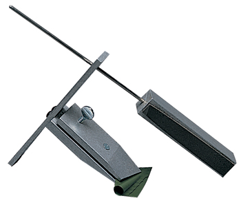 The Lil’ Shaver is another tried and true unit. It’s a jig with three angle choices built into it. Clamp your mounted or non-mounted broadhead into the jig. A file on a positioning block does the cutting. Slide the jig arm through the locating hole of the jig body and push the file against the broadhead from one side to remove stock. Then take out the arm, flip the unit over, re-install the arm and stroke this other side of the broadhead until a sharp ‘file sharpened’ edge results. This jig sharpens all two or four-blade heads. The file that comes with the kit is aggressive and removes stock quickly. The LIl’ Shaver is another good choice for re-shaping blunt factory grinds or reestablishing a good primary angle on dull broadheads.